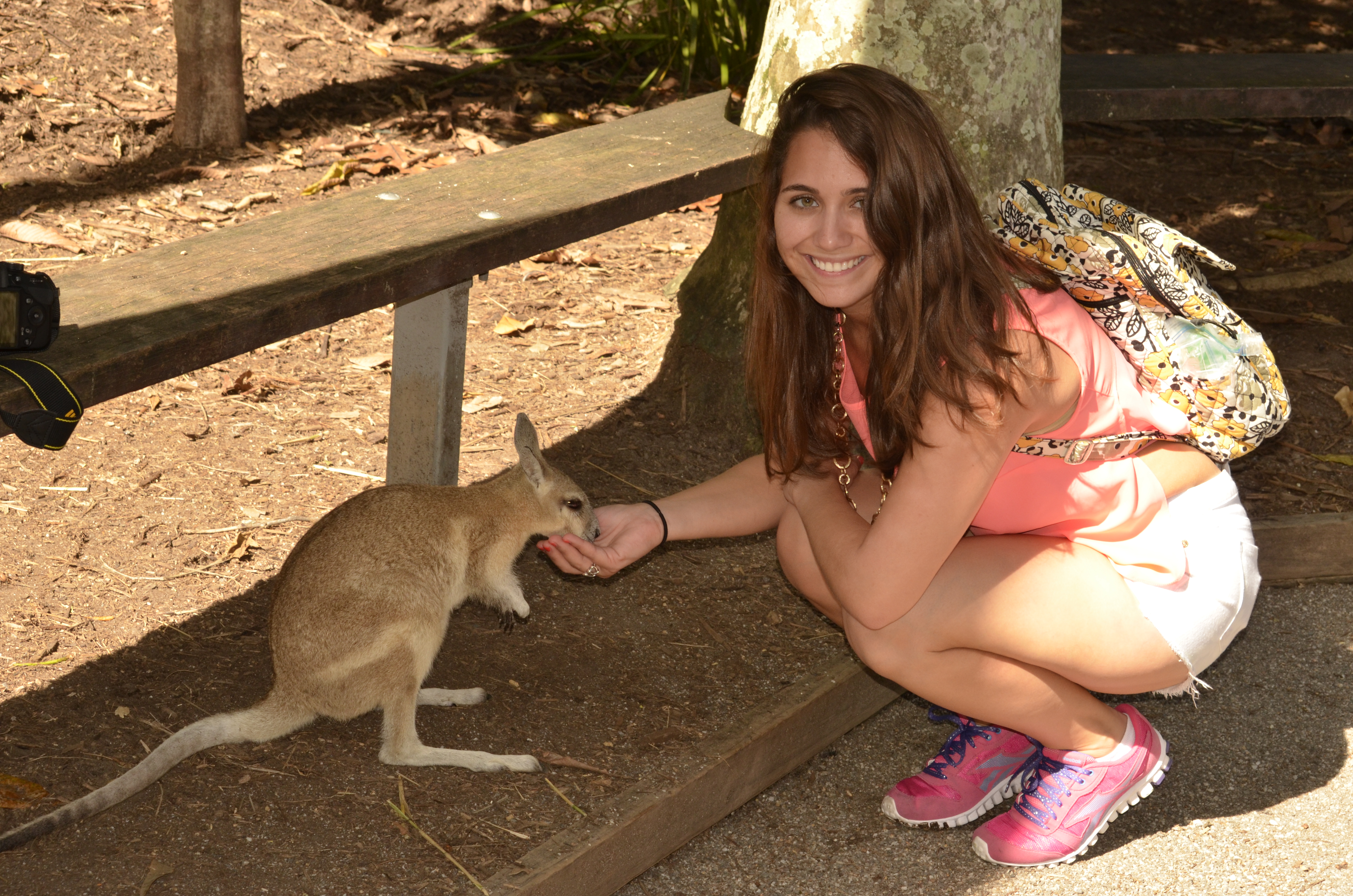 Hi Love Bugs! We visited the Daintree Rainforest yesterday, and boy was it lush! We had a series of interesting experiences to say the least, but it ended up turning out to be a-okay! We started the day off by going to the Wildlife Habitat in Port Douglas. We got to see many native Australian animal species in their natural habitat. We also had the opportunity to feed the wallabies, and hold a koala–being with the animals was my favorite part of the day! We then went to Mossman Gorge which was absolutely beautiful. However, if I were to be honest, I have seen bigger gorges, and better sceneries throughout North Carolina. We were a bit disappointed with the rainforest tour because we did not get what we paid for due to a scheduling error. Nonetheless, we had a great time.We then made our way to Port Douglas for lunch at the beach. This however was not an ordinary beach–it prohibited access to the ocean due to sharks, crocodiles, and deadly jelly-fish. Remind me again why there is a resort on this beach? Beats Me! We finished the day by taking a crocodile cruise, and we spotted 2 full grown crocodiles(both male and female) and then 2 baby crocodiles. All of the pictures below were taken on my Nikon D3200, besides the pictures holding the Koalas. We purchased those.