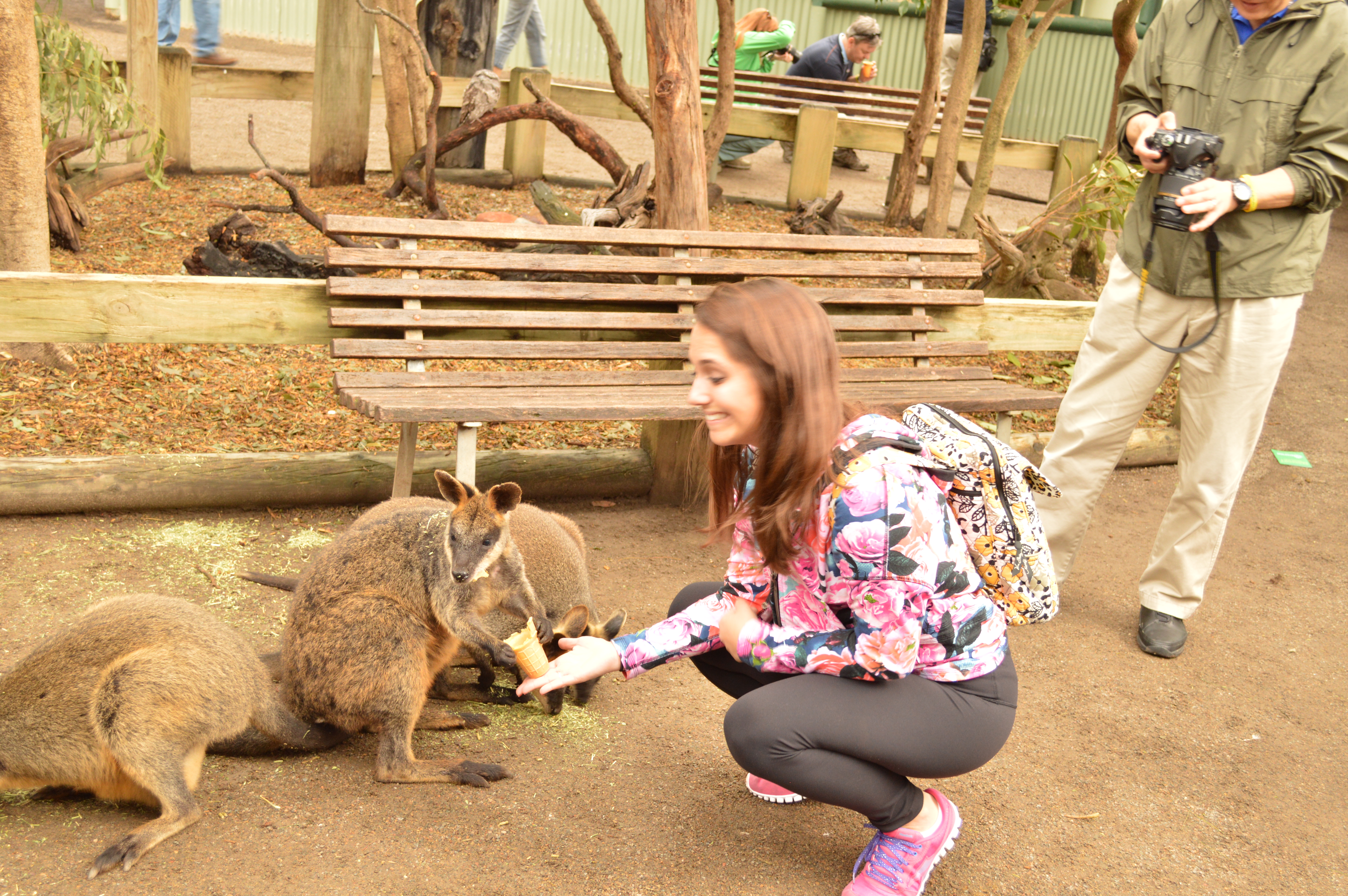 These little wallabies eat hay from ice cream cones. They hold them in between their little hands, and it is sooooo cute.