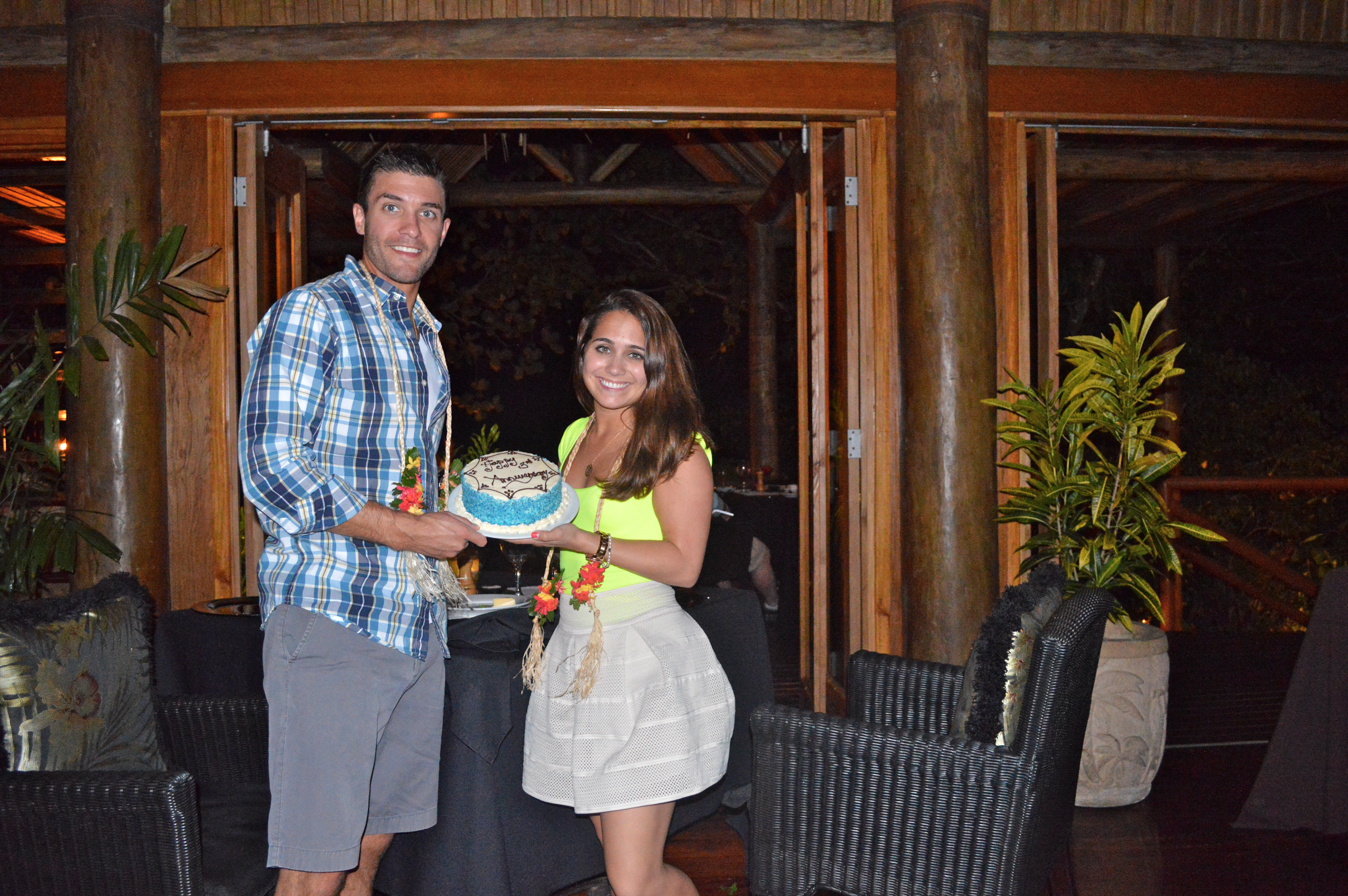 We started off our 4th day in paradise with breakfast in bed, and we then made our way over to the spa where we were given a 105 minute heavenly couples massage while listening to the waves crash against the rocks. After hanging out at the spa, we made our way to a beautiful waterfall, and had a very nice picnic lunch. That night, the Namale staff created a wonderful dinner for Sean and I to enjoy on our own private stretch of the beach. The stars in Fiji are absolutely BEAUTIFUL. You can see each and every little twinkle including the Milky Way! It was unbelievable. I tried to catch it on my camera, but I had some technical difficulties. After our romantic dinner, we went to the Kava Bowl, Namale’s entertainment center. Sean and I have a friendly competitive nature, and I am proud to say I beat him in Air Hockey best 2 out of 3. I guess I cant fail to mention that he beat me in bowling. We had an absolute blast, and even ordered a pitcher of mojitos (our favorite) & chips and salsa late into the night. We also began watching Anchorman 2 in their movie room, but fell asleep. Overall we had an absolutely fantastic day!