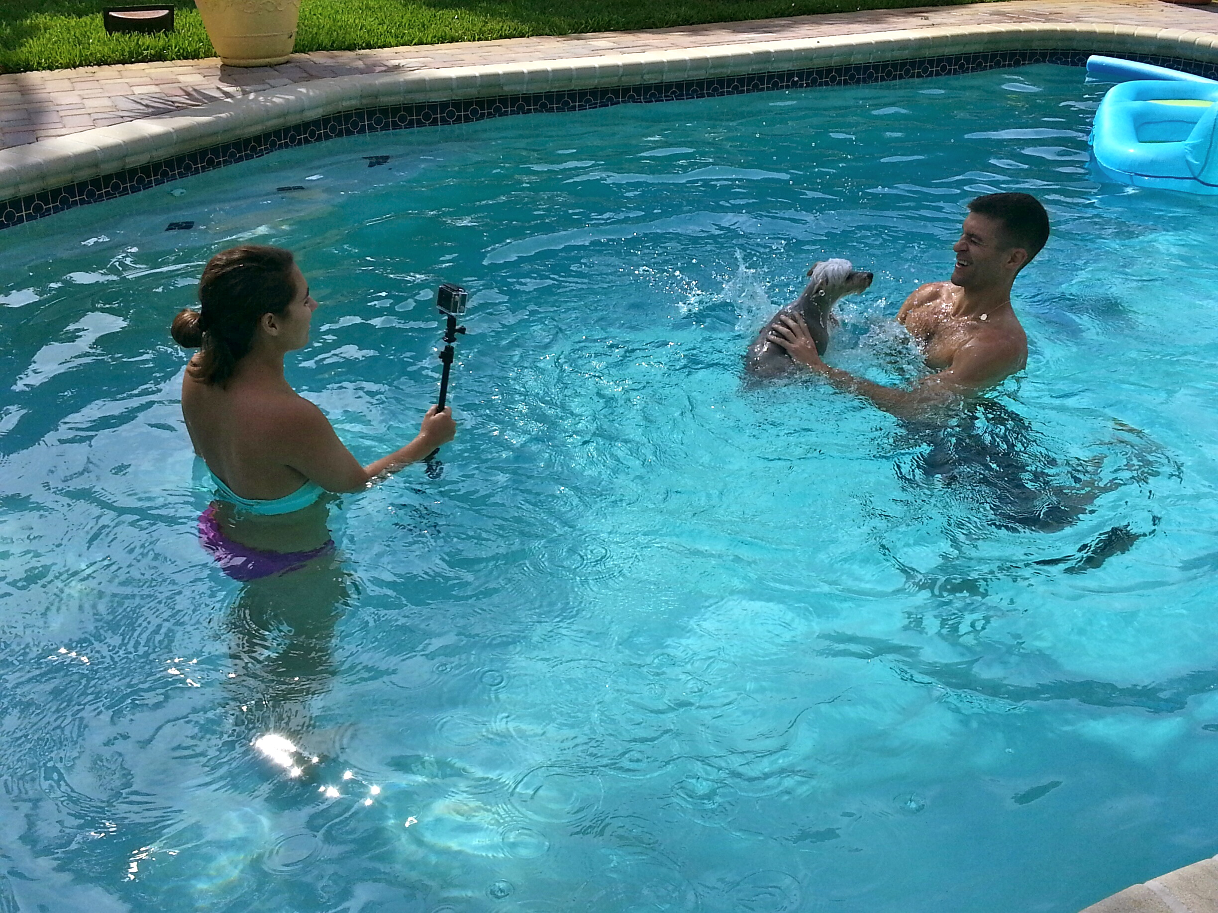 We kicked the weekend off by playing with the GoPro in our family pool while enjoying delicious strawberry mojitos, compliments of my mother, who was a famous 5-star chef and mixologist in another life. Sean and I also taught Tucker, our courageous little pup, how to swim. If you were ever curious about the saying, all dogs know how to swim, Tucker successfully proved that theory wrong! Our little man only doggy paddles with two legs as opposed to four making him sink like a bag of bricks. Under water, it looks as if he is peddling on a unicycle. It is quite hilarious. We ended our weekend with a full day of boating all over Palm Beach and making a stop at the gorgeous Peanut Island.