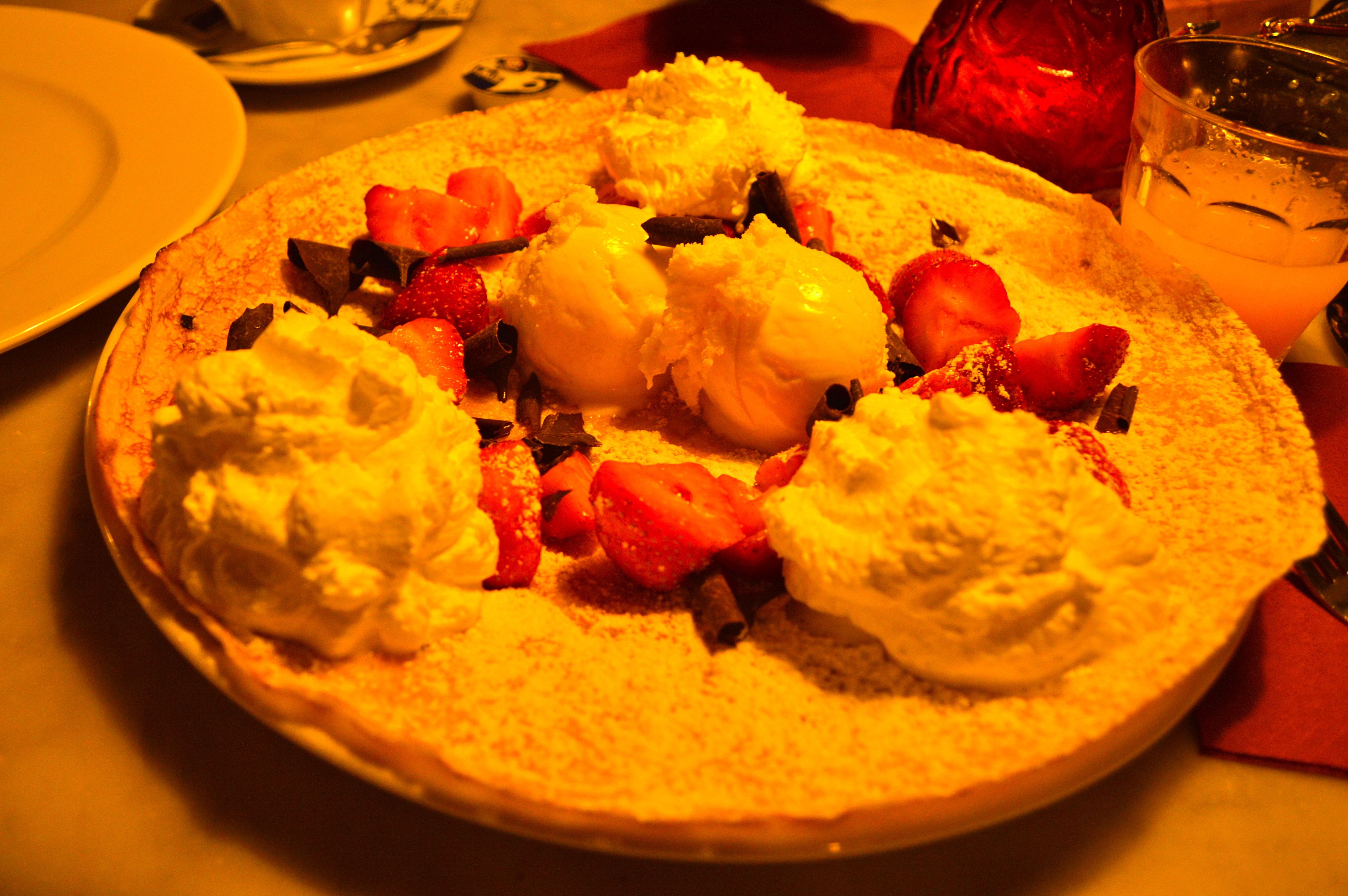 When researching Amsterdam, I read about the Dutch pancakes and Frites (french fries). They certainly did not dissapoint. Sean and I agreed our Spring Special Pancake lived up to all expectations, and it was the best pancake either of us have ever had. First off, it was gigantic. The picture may not show it, but Sean and I could not finish it. We got a buttermilk pancake with 2 scoops of vanilla ice cream, homemade whip cream, strawberries, and Belgian chocolate. It was seriously heaven in our mouths. We also tried the famous “Chipsy King” Dutch French fries and they were SO good. We couldn’t stop talking about them. These 2 dishes are must haves on your next visit to Amsterdam.