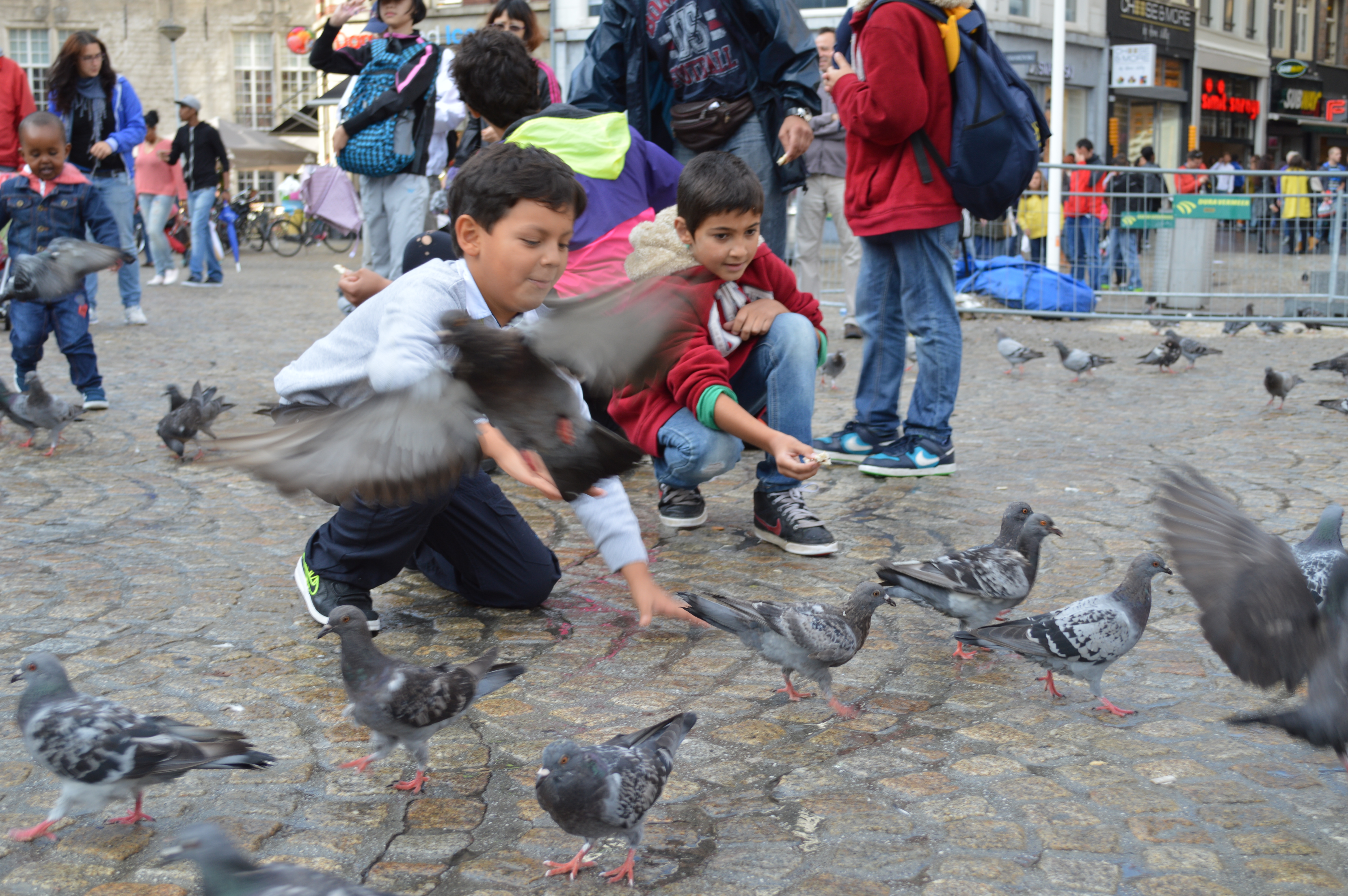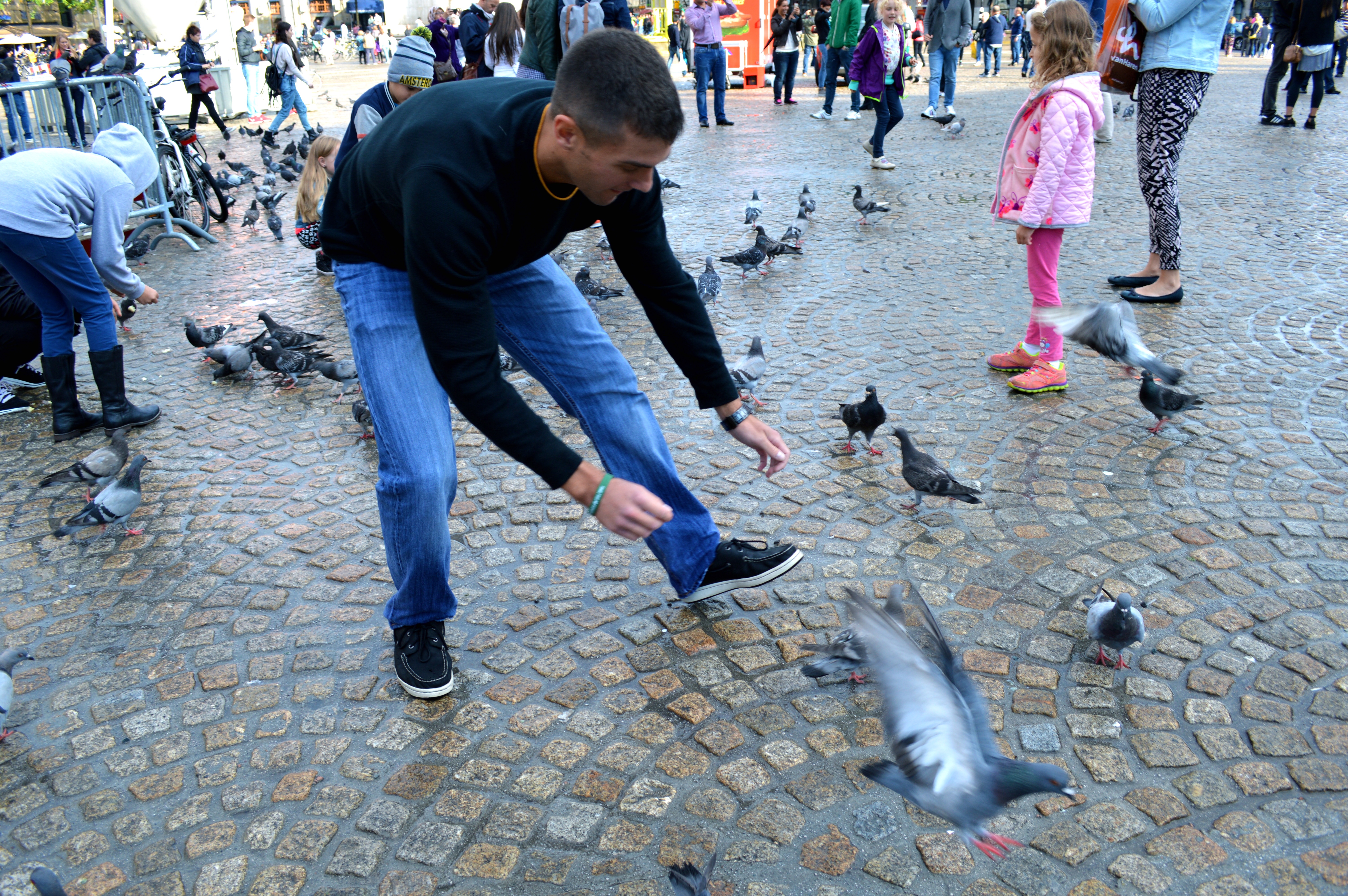 The below pictures were taken in the Dam Square. When I got there, I couldn’t help but laugh at how many times the word Dam is used in every day life. The Dam Square is also home to 1000s of pigeons. Everyone in Amsterdam loves the pigeons! There were children trying to catch them, adults feeding them and releasing them into the air. It was all very entertaining. Sean also tried to catch a pigeon but had no such luck; however, it definitely provided me a great laugh! I wish I could watch all over again.