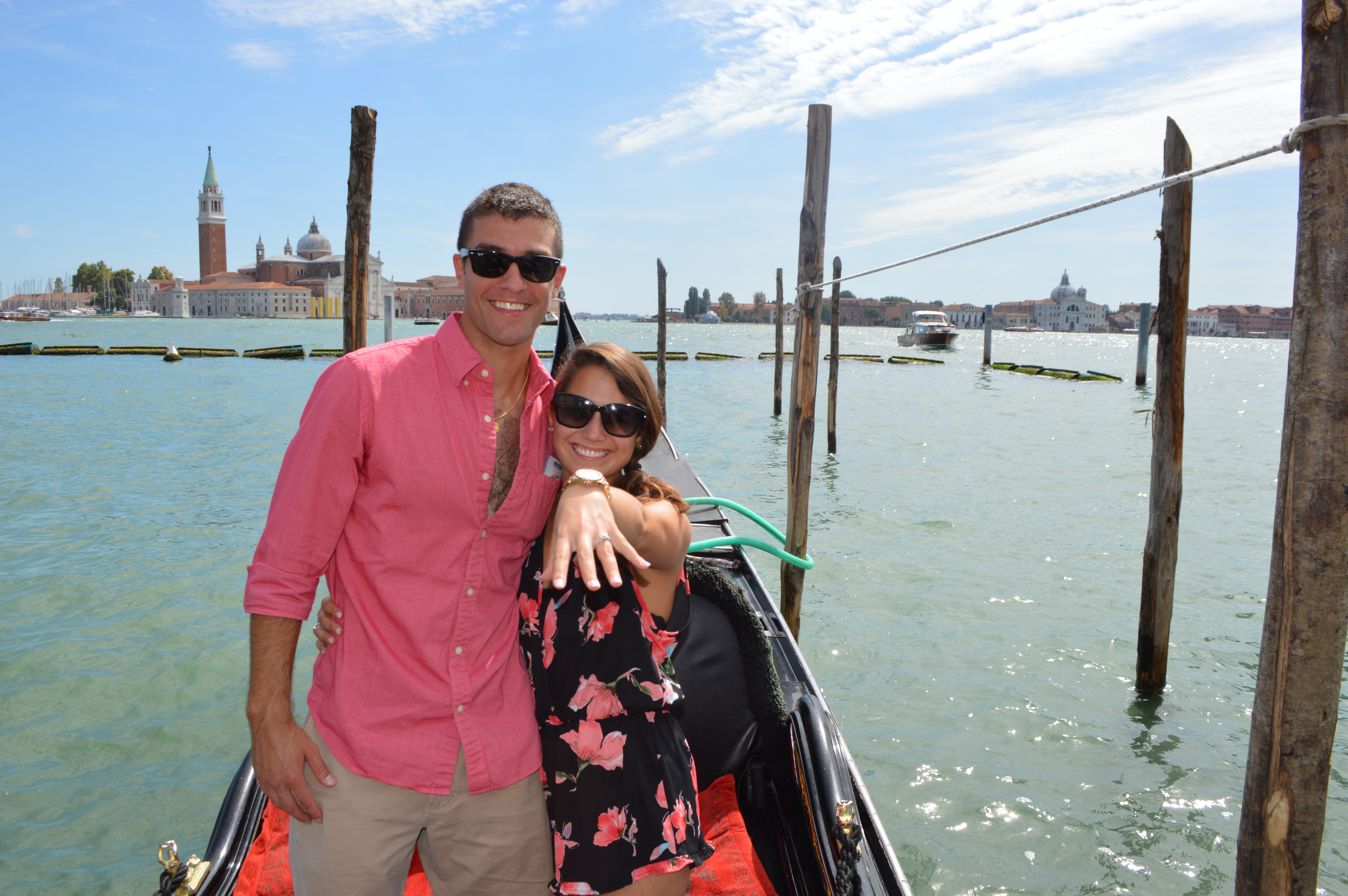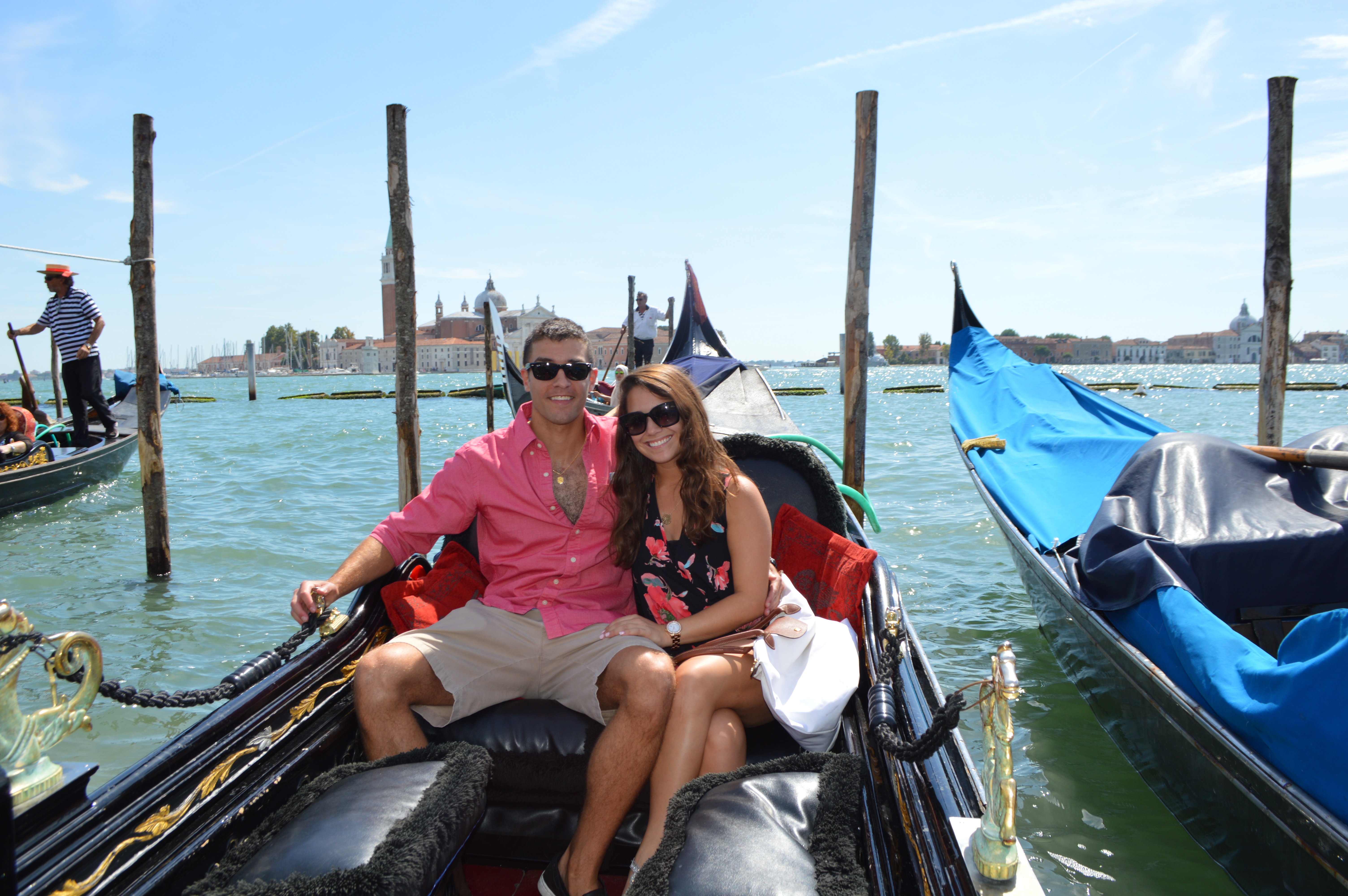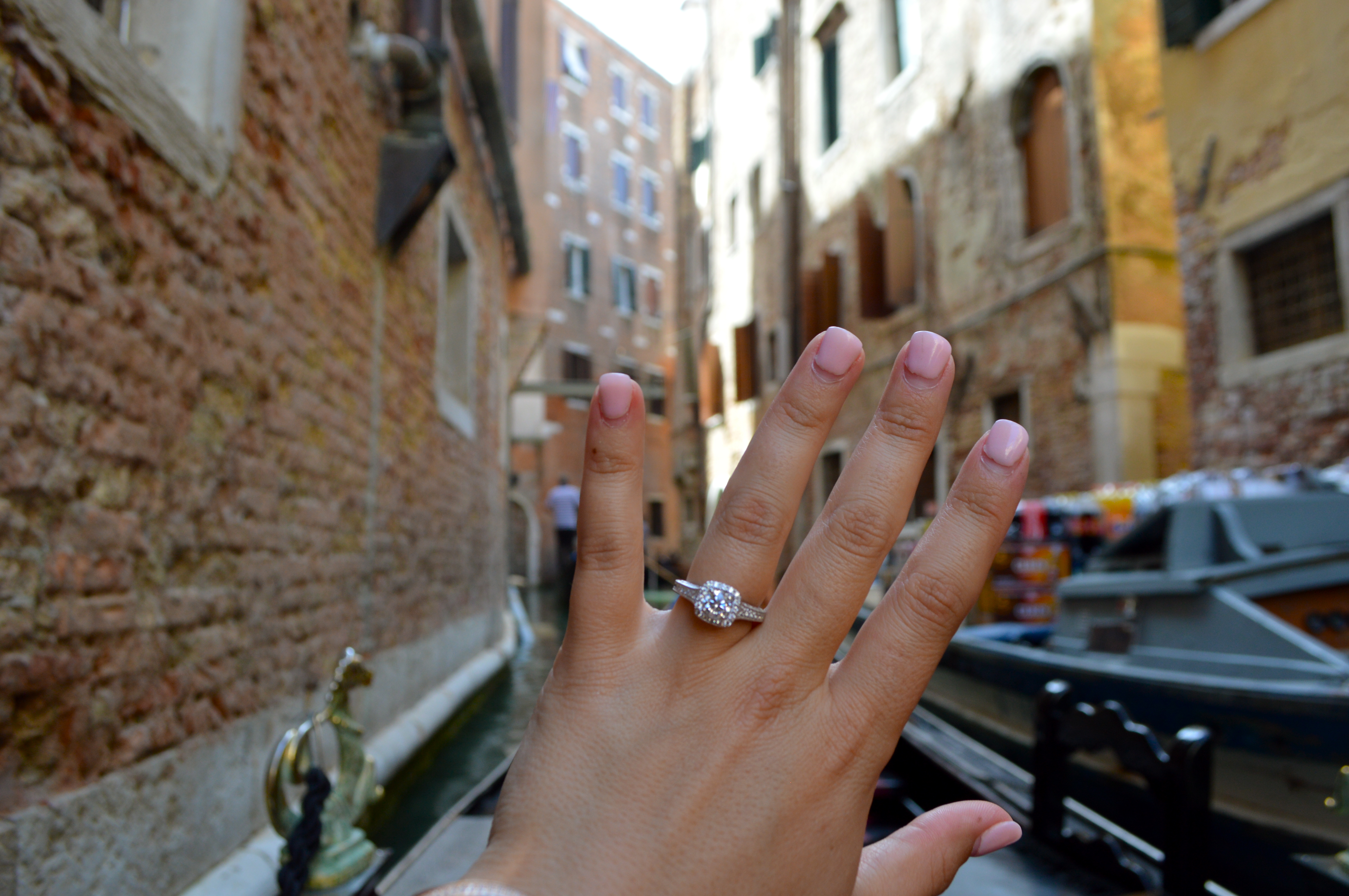 DSC_0450So this is where our love story begins: Sean proposed to me on August 30, 2014, the day after his 26th birthday. Each detail of our engagement will forever play a beautiful movie in my heart and soul. We woke up bright and early in Florence, Italy. Excited for a new change of pace, we jumped on the Italian fast train to the beautiful Sunken City, Venice. To contrary belief, the canals do not smell! You have no idea how many people have asked me that. After arriving and making our way to the cruise port, we were completely exhausted. I will have to detail this gruesome process in another post, but I will NEVER EVER EVER take another cruise from Venice, Italy. I don’t even think I would take one if someone paid me. The embarkation process, the 2-mile trek with luggage and zero transportation, the heat, the old cobblestones, the amount of times I stubbed my toes. NOPE. Never will I ever take a cruise from Venice in my entire life. Needless to say, I was completely surprised when Sean proposed. We had a bit of a hectic and incredibly frustrating morning by the time we finished checking our luggage. Upon finishing the embarkation process, we decided to get on a gondola to turn our day around, and little did I know it would turn my life around. The below pictures will show each step of our wonderful afternoon in Venice. It starts on the water taxi through the Grand Canal to St. Mark’s Square, choosing our Gondola, going through the canals and admiring the architecture, and then BOOM a beautifully romantic proposal. We then enjoyed a beautiful stroll around St. Mark’s Basilica and Doge’s Palace.DSC_0408 DSC_0410
